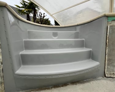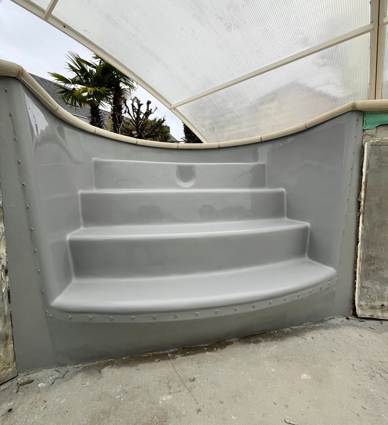 Réparation d'escalier piscine en polyester :